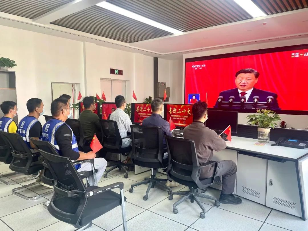 青山江灘運維中心組織黨員收看黨的二十大開幕式。