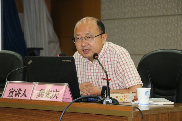為深入學(xué)習(xí)貫徹習(xí)近平新時(shí)代中國(guó)特色社會(huì)主義思想和習(xí)近平總書記在全國(guó)兩會(huì)期間系列重要講話精神,堅(jiān)定不移推進(jìn)全面從嚴(yán)治黨向基層延伸,根據(jù)市委統(tǒng)一部署和集團(tuán)公司黨委安排。5月18日,碧水集團(tuán)舉辦了“市委講師團(tuán)點(diǎn)單宣講活動(dòng)走進(jìn)武漢碧水集團(tuán)”暨黨委中心組(擴(kuò)大)學(xué)習(xí)會(huì),邀請(qǐng)到了省委講師團(tuán)成員、中南財(cái)經(jīng)政法大學(xué)馬克思主義學(xué)院院長(zhǎng)龔先慶教授為全體黨員干部開(kāi)展了一場(chǎng)題為“堅(jiān)定不移推進(jìn)全面從嚴(yán)治黨”的精彩宣講。集團(tuán)黨委書記、董事長(zhǎng)丁心紅,黨委副書記、紀(jì)委書記夏斌,副總經(jīng)理呂善功、劉霖,集團(tuán)及各所屬企業(yè)140余名黨員參加了宣講會(huì)。