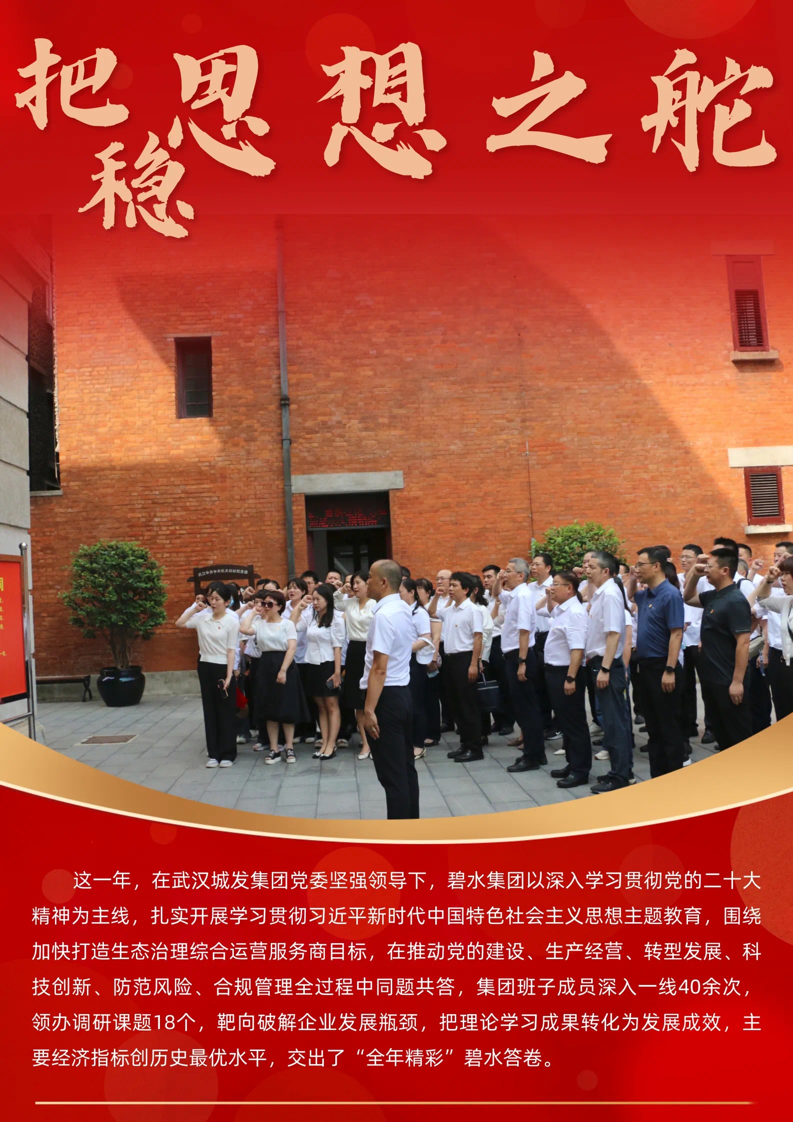 ? ? ? ?2023年,碧水集團(tuán)堅(jiān)持以習(xí)近平新時(shí)代中國特色社會(huì)主義思想為指導(dǎo),以全面學(xué)習(xí)貫徹黨的二十大精神開局啟航,在武漢城發(fā)集團(tuán)領(lǐng)導(dǎo)下,錨定轉(zhuǎn)型發(fā)展首要任務(wù),圍繞“抓項(xiàng)目、保投資、謀發(fā)展、促改革、防風(fēng)險(xiǎn)”工作主基調(diào),保持向上向好的發(fā)展態(tài)勢,交出一份“難中有為、干中有成、穩(wěn)中有進(jìn)”的轉(zhuǎn)型發(fā)展新答卷。